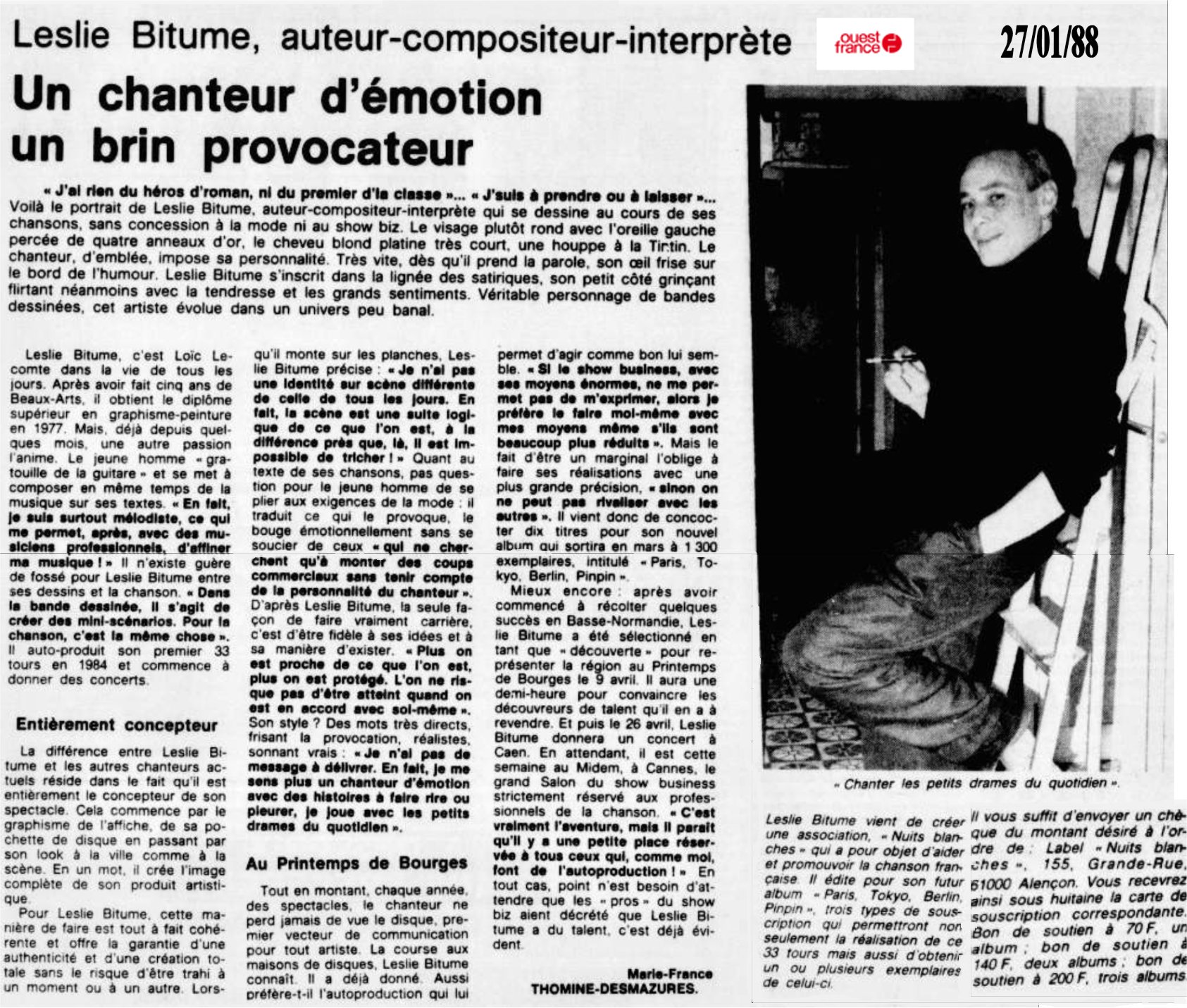 Auteur compositeur d'Alençon, de son vrai nom Loïc Lecomte. A commencé, en 1994, à diriger la selle La Luciole à Alençon.