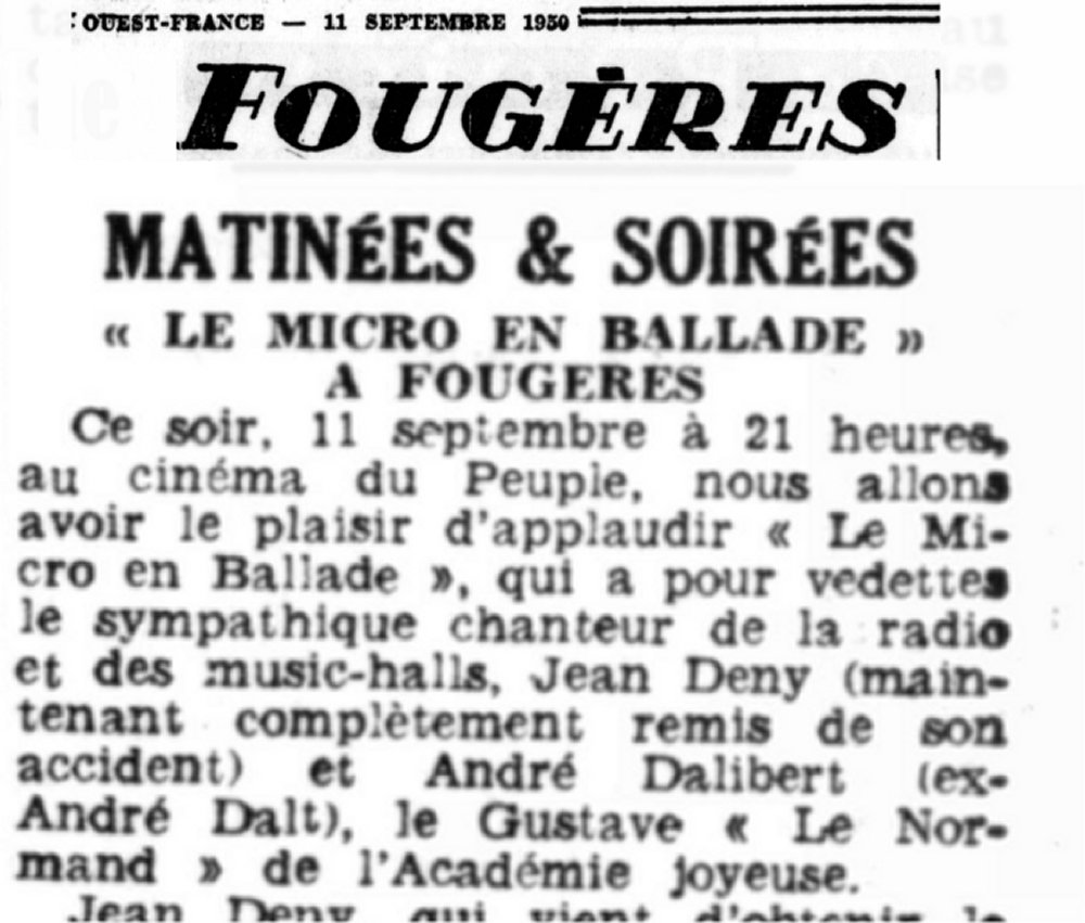 André Dalibert, né à Sourdeval-la-Barre (Manche), le 11 mars 1908, et mort à Grainville-sur-Odon (Calvados) le 7 juin 1997, était un chanteur et comédien français, sollicité par de célèbres metteurs en scène durant