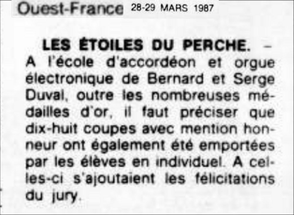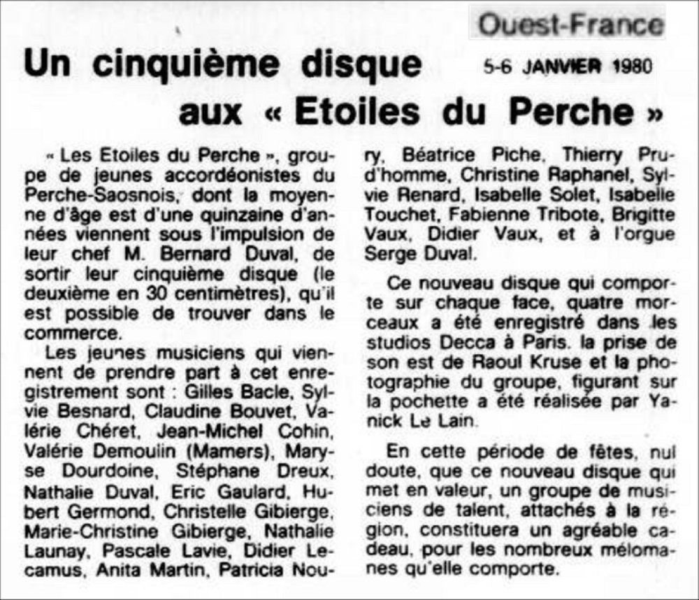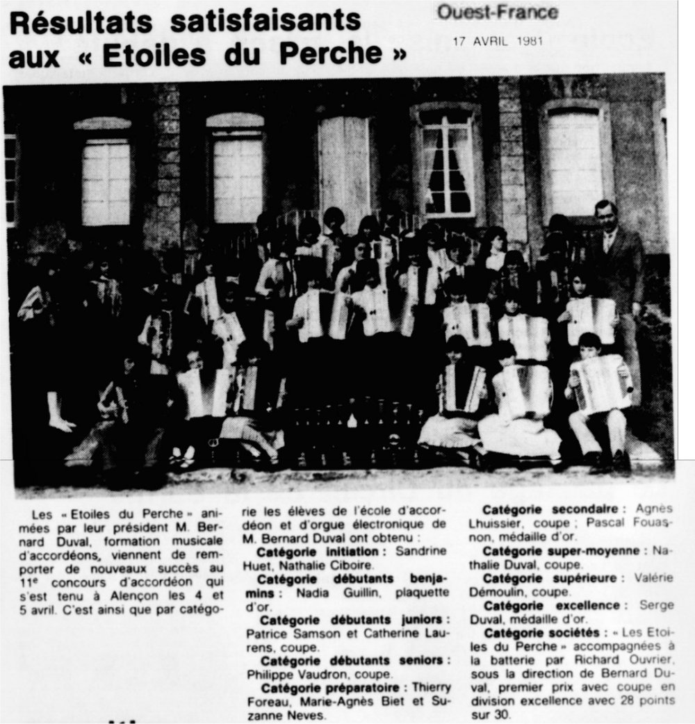 Alain JANVIER, Anita MARTIN, Anne Marie BOULAY, Béatrice PICHE, Claudine BOUVET, Denis BAGOT, Didier VAUX, Eric ROBERT, Evelyne JOUIN, Fabien DAIGNAU, Henri BEAUFILS, Jean Pierre FERGANT, Jean François MICHON*, Josette ROUSSEAU, Martine CLERARDIN, Michel GUESNE, Michèle LAVIE, Nathalie DUVAL, Patricia NOURY, Philippe TASSE, Sylvie BESNARD, Valérie DEMOULIN, Véronique BOULAY: accordéon