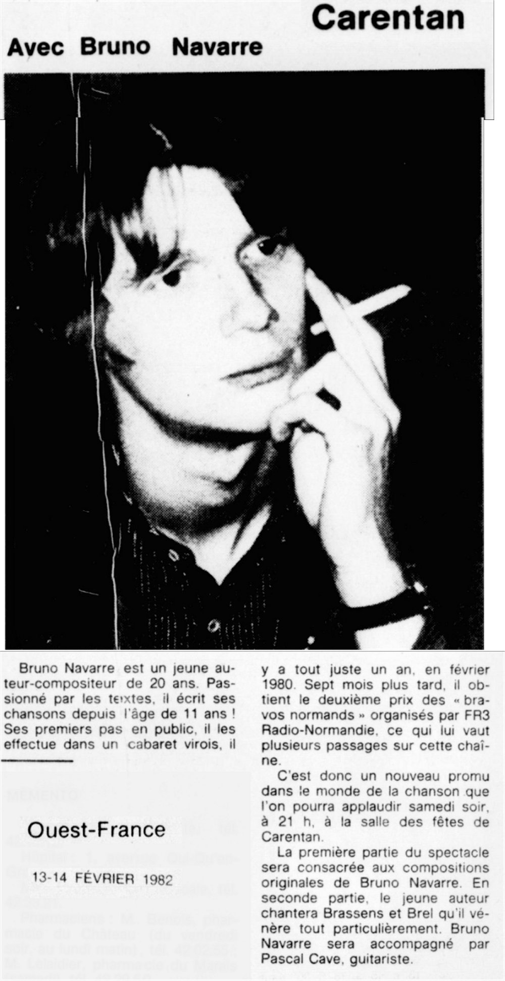 Chanteur virois. Il arrête la chanson en 1989 après un ultime concert avec son ami Bruno Brel et s'est ensuite consacré au journalisme ainsi qu'au théâtre.