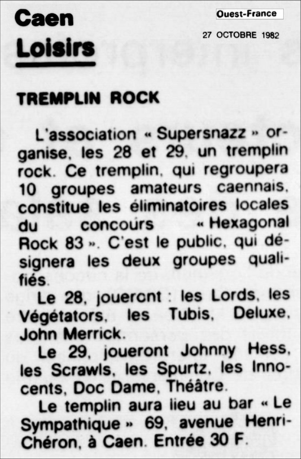 Avec TEXPLAY, SCRAWLS, JOHN MERRICK, OBJECTORS, DELUXE,