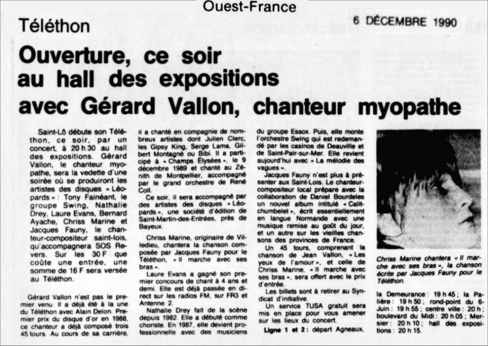 Disque réalisé pour le Téléthon 1990. Une face par Gérard Vallon, l'autre par